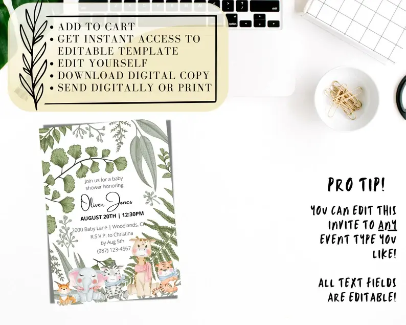 EDITABLE Woodland Creature, Wild One, Baby Shower